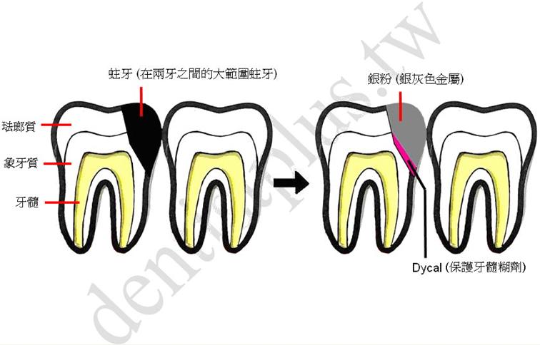 牙縫大範圍蛀牙銀粉治療
