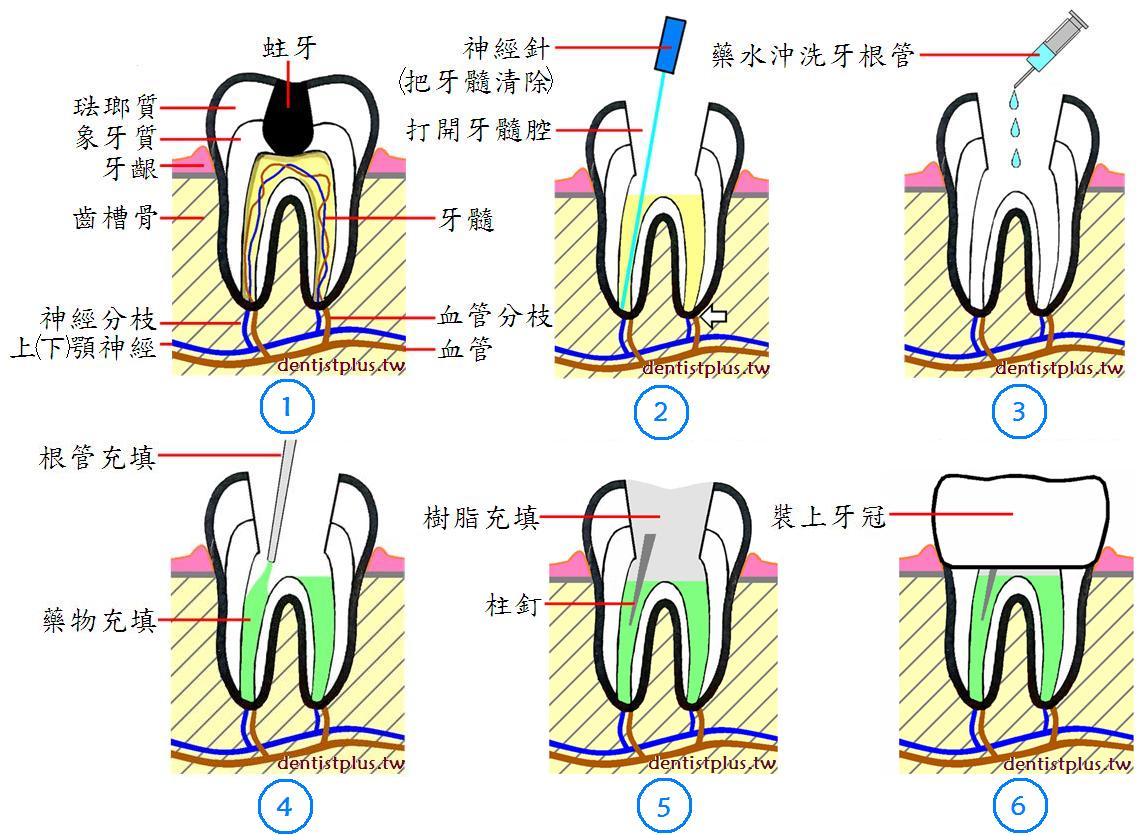 當您的蛀牙深及牙髓時,醫師必須為您做牙根管治療,其治療過程如下: